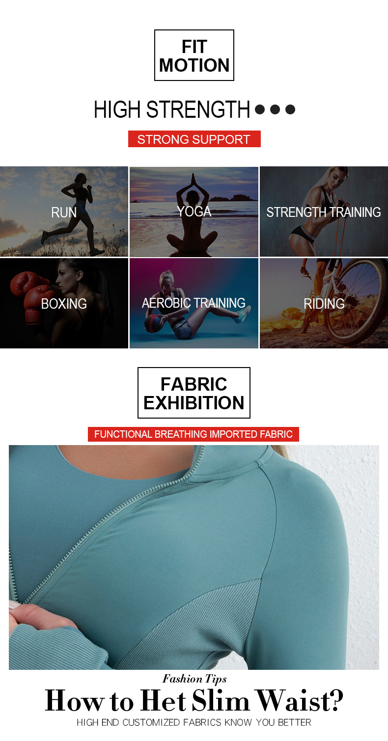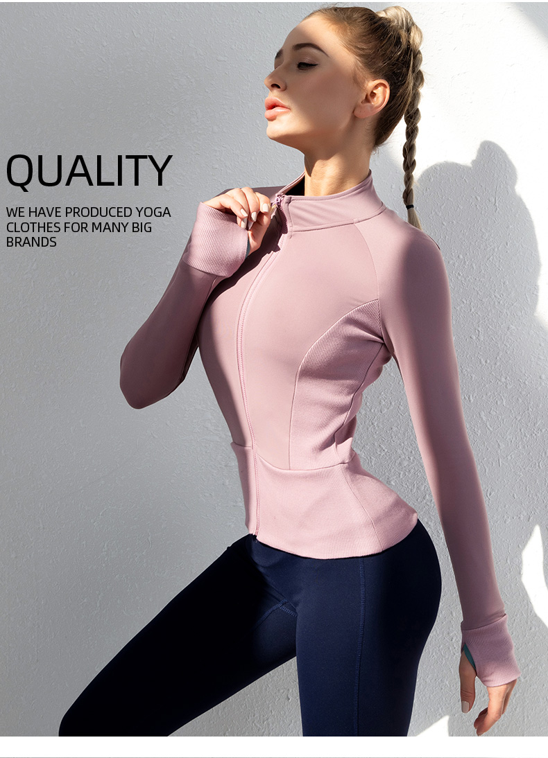 Mulheres sexy com zíper fino com zíper de manga comprida para ginástica e jaqueta esportiva de ioga de alta qualidade